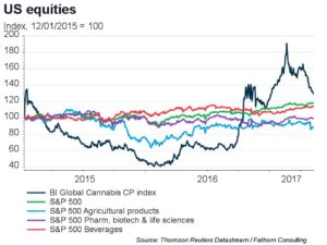 The world’s best performing hedge fund in 2016 made money by investing in the marijuana industry. Bloomberg has even created a global cannabis index, which has comfortably outperformed the S&P 500 since its inception last year. Its constituents now have a market capitalisation of US$52 billion. The term retirement pot really could be taking on a new meaning. Granny smoking a joint? Think again.
