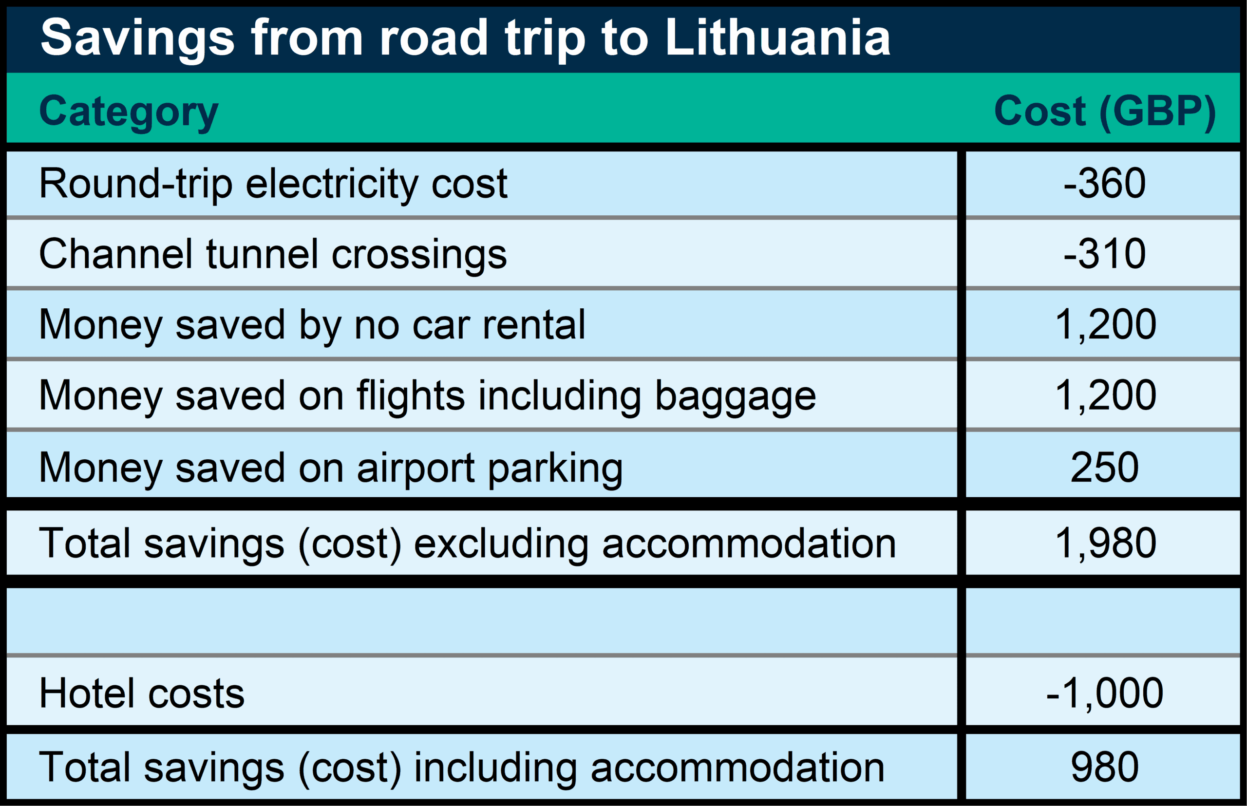 Some readers will be familiar with our recent study on the economics of different ways to decarbonise aviation. One option we didn’t explore was not flying where an alternative mode of transport to get to your destination exists. My wife and I put this option to the test on this year’s family summer trip from London to Lithuania (where I am writing from now). With two kids. Ages 1 and 4. In an EV. Was it worth it?