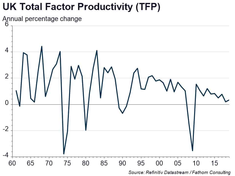 Advanced economies across the world have been battling the productivity puzzle since at least the early 2000s. The UK is one of the nations hardest hit by this, having seen growth in productivity stall, and lag behind other countries such as the US. Due to the impact that low productivity growth can have on longer-term economic growth, economists have long been searching for ways to boost productivity into the future.
