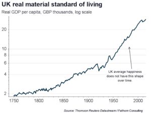 Welfare economics is all about trying to design ways of increasing human happiness (however defined) by manipulating the various levers of economic policy. But a number of issues present themselves – too many for them all to be treated here. Let’s focus on one: the role of per capita GDP in influencing happiness. The belief that this relationship works has been the foundation of macroeconomic policy since the start of the industrial revolution at least.